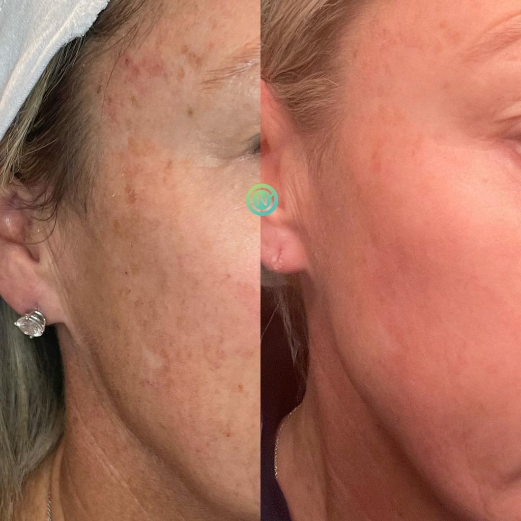 - Diminished appearance of brown spots, broken capillaries, sun damage, and/or rosacea.